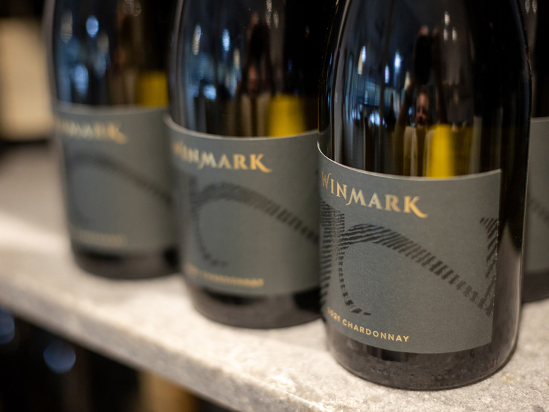 The 72 illustration is created from an aerial photograph taken of the block, with the vines drawn and printed using a high-gloss raised varnish, giving it a very premium finish. This label is Winmark’s only dark label, and the monogram on the matte black capsule is embossed to enhance the exclusivity of this product.
